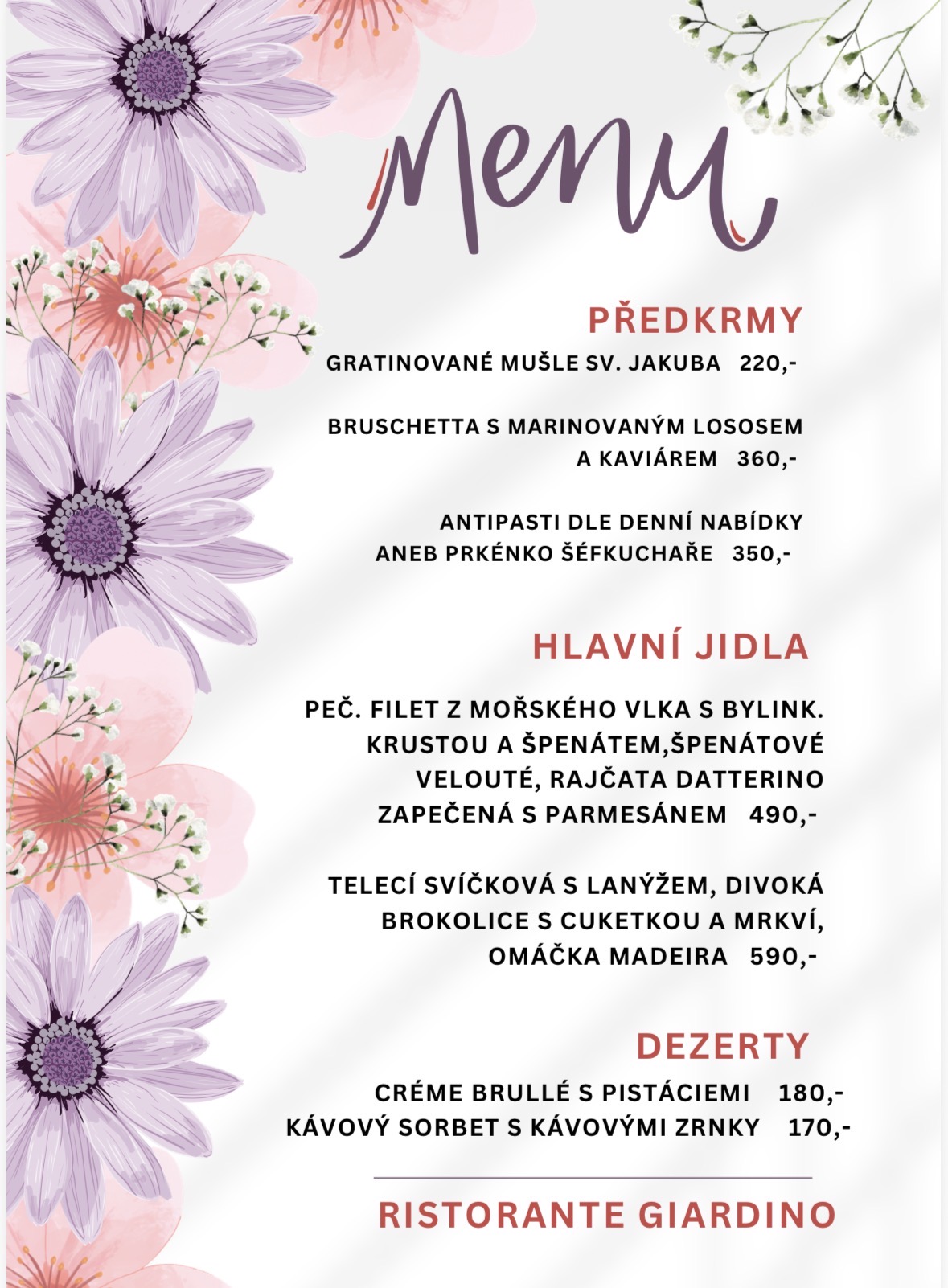 V jídelníčku naleznete široký výběr z italské kuchyně.
