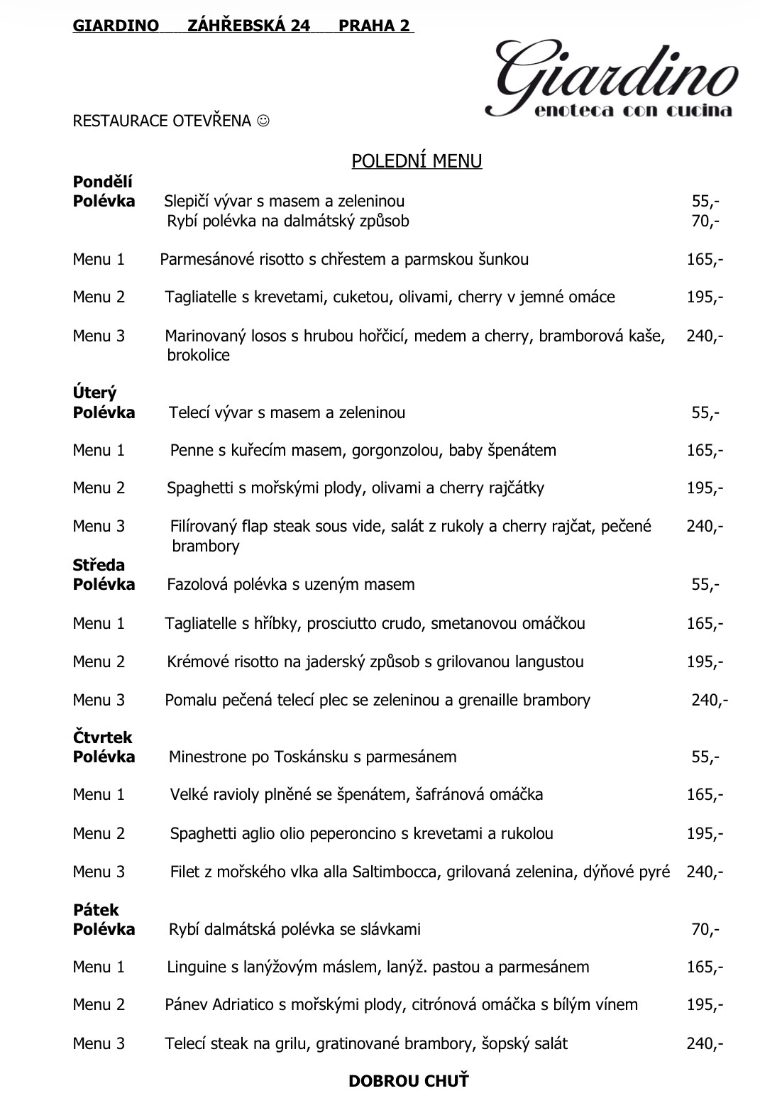 MENU podáváme ve všední dny
